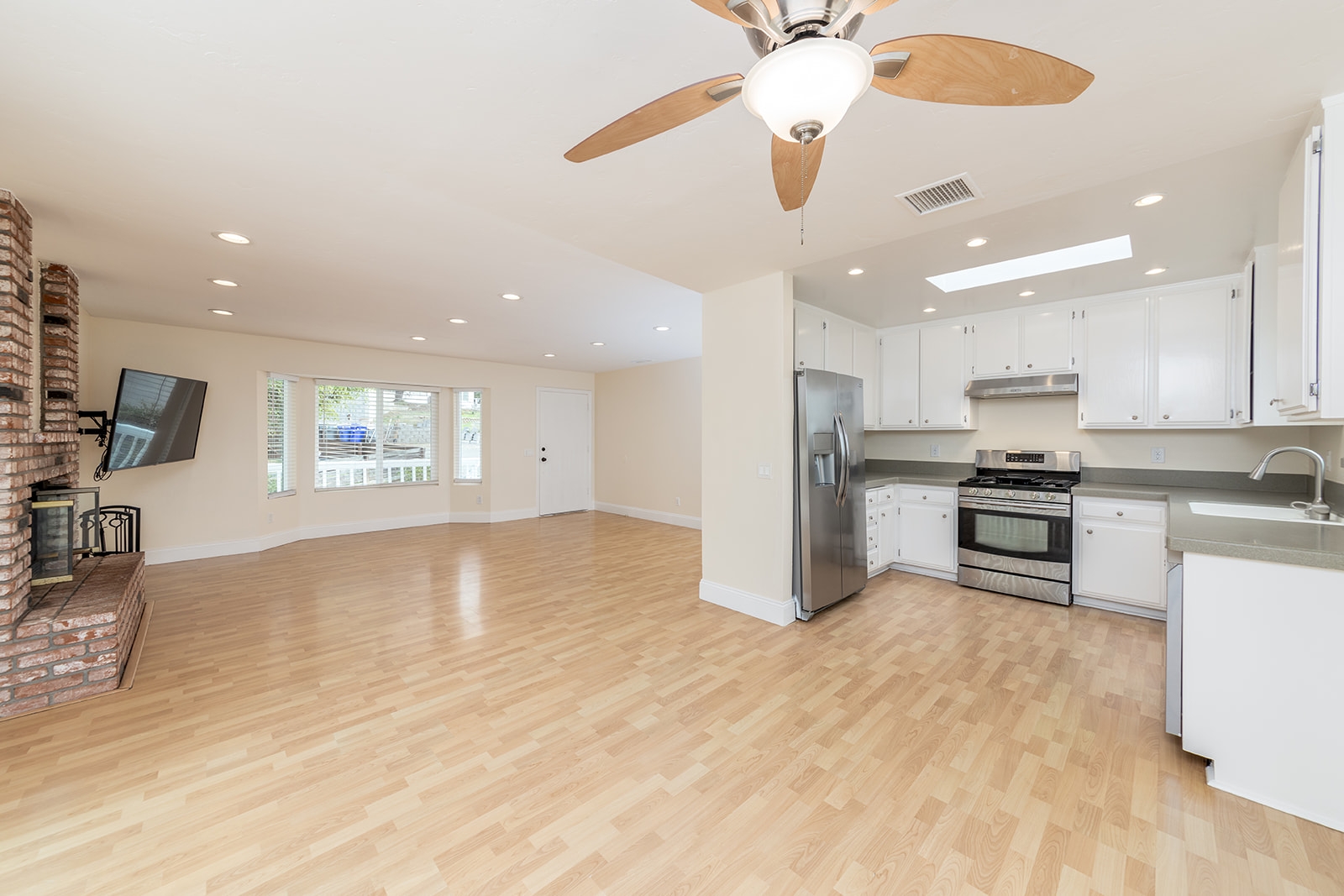 Welcome to this charming 3 bedroom, 2 bathroom home located in Vista, CA. This single-story house features a front patio perfect for enjoying your morning coffee, as well as a back patio for entertaining guests. Cozy up by the fireplace in the spacious living room, or in the open-flow kitchen/dinning room. The laminate flooring throughout adds a touch of elegance, while the private backyard offers a peaceful retreat. Situated on a quiet cul-de-sac, with 2 car garage that includes two storage racks. Don't miss out on this opportunity to call this house your home. Single pet allowed with owner approval, requirement will be $100/month in additional rent and $500 additional deposit.Details