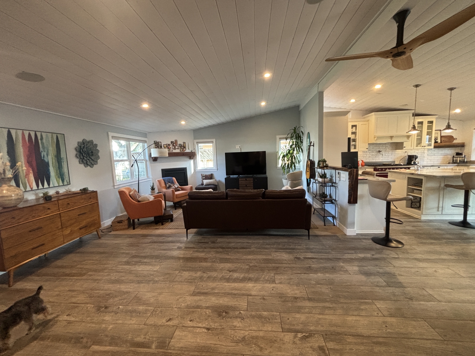 You will LOVE this house! Fully redone from the studs up, customized in every way - this cute Oceanside bungalow will make you want to stay forever! Large, open great room with high shiplap ceilings and ample lighting leads into a gorgeous, spacious kitchen. All appliances are top-end, including the centerpiece, a red Lacanche range imported from France. You will not eat out again. Wood plank tile floors and mini-split air conditioning along with an amazing gas fireplace with a blower that quickly heats the living areas will make this the perfect property no matter the time of year. The front bedroom has great light and built-in storage. The hall bath is beautiful with a jetted tub and a chandelier. The laundry is conveniently located and includes additional storage space. The primary bedroom is large and has a wonderful slider allowing access to the back patio, along with a huge walk-in closet and lovely full bath with all the touches you would want if you were to build it yourself. The yard has a mature avocado tree that produces tons of avocados and the orange tree has the best oranges twice a year! Rainwater collection systems ensure you are always being mindful of our climate and provide water for all your gardening. One car garage is great for storage and there is plenty of street parking, along with one spot in the front driveway. Electric, gas, water and trash are all included in the rent! There is a long-term tenant in the ADU in the back of the house, but the yard is exclusive to the main house. Walking distance to restaurants and the beach. Schedule today, this one won't last long! A single pet may be approved. Please submit for approval.Details